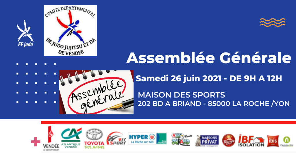 Veuillez trouver la convocation pour l'assemblée générale du Comité de Judo de Vendée qui aura lieu le samedi 26 juin 2021