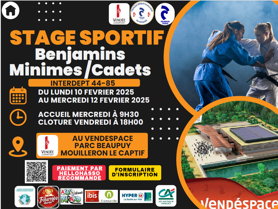 LAURENT DE ELGUEZABAL le 04 janvier 2025 à 17:45 Bonjour J'aimerai inscrire ma fille Alizée, qui a participé au tournoi de Noël, ceinture verte, 12 ans, Club de l'Etoile du Payré. Pouvez-vous m'envoyer le programme svp ? Merci, Laurent